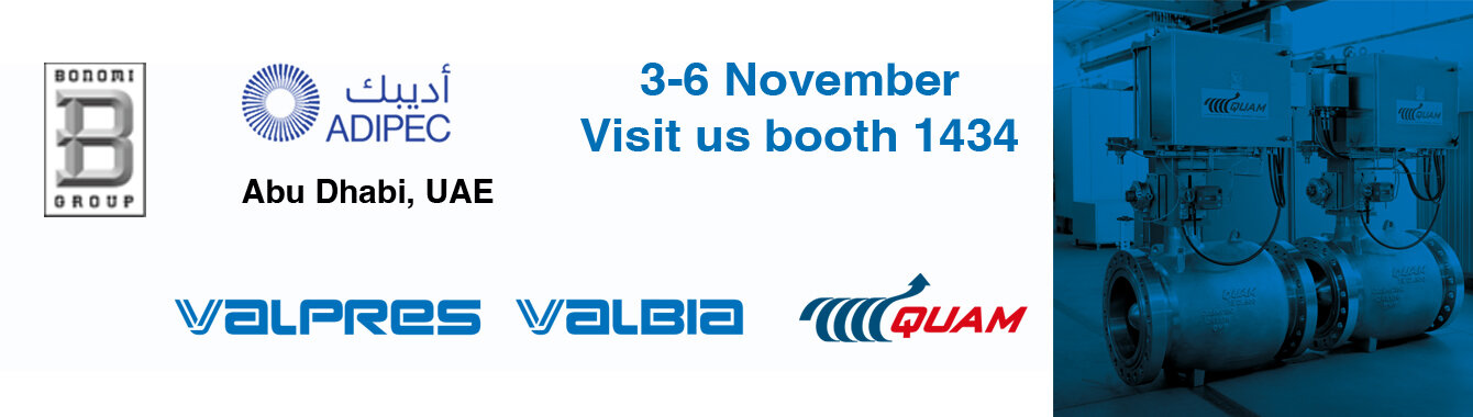 ADIPEC 2025 | Join us from November 3 to 6 at stand 1434, where we will showcase the integrated technological solutions of Quam, Valpres, and Valbia — companies specialized in the industrial and Oil & Gas sectors: ball valves, gate valves, choke control valves, axial flow valves, and actuators to deliver fully integrated solutions — including HIPPS, SSV, WHCP, anti-surge valves, and slam-shut valves among the products we will present.